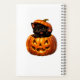 Capture your spooky ideas and magical plans in our pumpkin Peking kitty spiral notebook this enchanting cover features a precious black kitten with a playful pink tongue popping out of a glowing jackal lantern to wish you a fantastic holiday set against a dream like Halloween night filled with a full moon fluttering baths and friendly little ghosts this high detail notebook is a total sugar-free treat