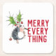 Whimsical Hedgehog Merry Everything Christmas Square Paper Coaster