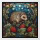 Whimsical Hedgehog & Raspberries Stained-Glass Window Cling