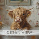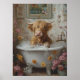 Add a splash of whimsy to your walls with this charming art print featuring a highland cow enjoying a relaxing bubble bath in a vintage clawfoot tub. Surrounded by floral wallpaper, cheerful blooms, and sudsy bubbles, this playful scene blends farmhouse charm with cozy cottagecore vibes. Perfect for bathroom decor, farmhouse homes, or as a humorous gift for cow lovers, this print brings smiles and style to any space.