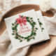 Celebrate the season with our delightful Whimsical Holly Wreath napkins, featuring a charming illustration of a Christmas wreath made of holly with a festive red and white striped bow that captures the magic of Christmas. The playful "Christmas" greeting in the middle of the illustration is written in a whimsical, playful font, adding an extra touch of cheer to your holiday wishes.
