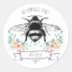 Whimsical honey bee floral with pinks and greens homemade honey label sticker for your honey jars. An earthy lovely sticker with hand drawn vintage bee surrounded by pink and green floral, round logo design. Quirky hand lettered typeface font. Label your homemade honey or commercial honey for food fairs, farmers market, or farm stand. You may label your honey and add your name to the cute banner under the bee. Earthy, summer artistic label.
