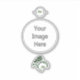 An illustration of a whimsical hooded grasshopper with facial hair. The insect is perched on grass. The grass is curled down in circle shape make a frame around a M. M is short for monogram and can be personalized for your own initial.