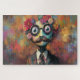 Explore a world of whimsical surrealism with this vibrant puzzle featuring a colorful humanoid character with big, expressive eyes and a floral crown. This high-quality puzzle offers a fun and challenging experience for puzzle enthusiasts, while the bright and imaginative design makes it a perfect gift for art lovers. Enjoy hours of relaxation and creativity with this unique puzzle that brings art to life, piece by piece.
