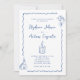Whimsical Illustrated Cobalt Blue Wedding Invitation