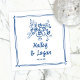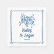 This modern wedding paper napkin features a hand-drawn floral illustration with frame and hand-lettered typography in the perfect shade of blue. The look is handmade and fun, yet still romantic and elegant! See the collection for more items.