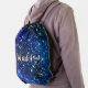 Whimsical iridescent blue Glitter monogram Drawstring Bag