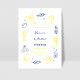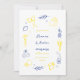 Set the tone for your special day with this whimsical save the date card featuring hand-drawn yellow and blue Amalfi Coast lemons, vibrant flowers, and a wine frame. Perfect for an Italian-inspired wedding, this unique design captures the charm of the Amalfi Coast with playful, artistic details. Ideal for couples seeking a creative, Mediterranean feel for their wedding stationery.