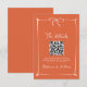 A wedding enclosure card featuring a warm sunset background and a white border with bow, designed to include a scannable QR code for easy guest access to RSVP, registry, or wedding details.