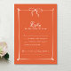 A coordinating RSVP card featuring a warm orange background with a white whimsical frame and asymmetrical bow. Designed for modern romantic weddings, this response card pairs beautifully with the full invitation suite.