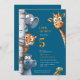Join the wild adventure with this adorable jungle-themed birthday invitation! Featuring a mischievous tiger, a curious elephant, a playful giraffe, and a friendly hippopotamus peeking out from behind a birch tree, this design brings the magic of the safari right to your celebration. The vibrant blue background and charming animal illustrations create an exciting atmosphere for any young explorer's special day. Perfect for a 5th birthday or any jungle-themed party, this invitation sets the stage for a roaring good time and will have your guests excited to celebrate.