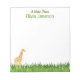 Add your child's name to this adorable safari scene—a giraffe cartoon on a green grass stationery notepad! It's perfect for the child who loves animals and also loves to write to-do lists. It's an outdoorsy nature-loving feeling.