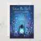 Announce your wedding date with this customizable save the date card. It features a whimsical scene of a vintage lantern and fireflies. This whimsical save the date announcement is perfect for any wedding theme or season.