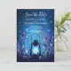 Whimsical Lantern and Fireflies Blue Save the Date