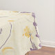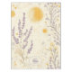 This tablecloth features stylized purple flowers resembling lavender paired with delicate yellow blossoms on fine stems. Set against a light, creamy background, the design is accented with soft yellow-orange circles and scattered speckles, creating a whimsical, painterly effect. With its gentle blend of floral detail and abstract watercolor shapes, the pattern exudes a dreamy, sunlit charm—perfect for spring and summer-inspired designs.