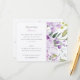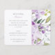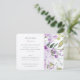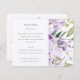 This reception invitation card exudes whimsical charm, with a stunning side illustration of lilac flowers and green foliage, capturing the enchantment of a blooming garden. The shades of lavender, amethyst, and sage create a delightful visual harmony against the soft white background. The card's left side elegantly details the event in a beautiful purple script, inviting guests to an evening of dinner, dancing, and merriment. This card is a promise of joy and a beautiful keepsake for an unforgettable celebration.