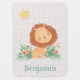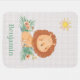 This cute blanket features an adorable lion sitting amongst tropical leaves, ferns and flowers with the sun shining overhead. You personalize with your babies name below the lion. Background is a tan gingham check.