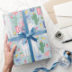 Blue Whimsical Llama and Rainbow Gift Wrap - this whimsical wrapping paper is covered with llamas and cacti. It's perfect for wrapping birthday presents or baby shower gifts.