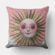 Whimsical Maximalist Celestial Sun Pink Floral Sun Throw Pillow