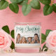 Cute holiday photo candle featuring "Merry Christmas" displayed in a green handwritten script overlay at the top of the design. Personalize the front of the Christmas candle with your favorite horizontal photo and family name. The back of the candle displays an additional photo. The 2 photo holiday candle is perfect to give to friends and family.