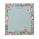 Perfect for anyone who loves mice and whimsy, this notepad can be personalized with a name for a custom look! Woodland forest mice wearing either a scarf or Santa hat, are scurrying among snow-dusted leaves, ferns and flowers on a dark teal blue background. There are also berries and mushrooms for each mouse to enjoy! Greens, pinks and teal set off the gray mice. Reads, "From the desk of" at the top of the snowy light teal note area. Perfect for those Christmas notes or to brighten your office during the holidays! Original artwork by Tuzi Williams.