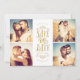Announce your date in style with this 4-photo save the date card featuring bold typography. The reverse features a striped pattern and an additional photo and text.