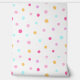 Transform your space with this Peel and Stick Wallpaper featuring a whimsical polka dot pattern in bright colors - turquoise, yellow and pink shades on a white background. This wallpaper brings a playful look to any room. Perfect for kids' rooms, nurseries, hallways, and any area needing a cheerful touch. Easy to apply and remove, it's an ideal choice for creating a fun and inviting look in any space. - Kate Eden Art
