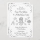 Whimsical and romantic, this hand-drawn wedding invitation features charming black illustrations of wedding day icons, including a tiered cake, delicate flowers, a sweet cupid, graceful dove, and classic wedding rings. Paired with playful handwritten script and floral accents, this artistic black-and-white design sets a lighthearted yet elegant tone. Perfect for couples seeking a unique, creative, and unforgettable way to invite loved ones to celebrate their big day.