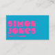 Funky typography business cards in accents of knockout pink, safety yellow and out of the blue.