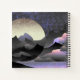 Modern abstract art with dreamy scene of big moon and mountain landscape.