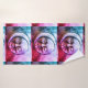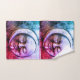 This is an artsy depiction of the sun with a face next to the moon with hot pinks and green blues in an abstract shading.The face looks peaceful and pensive. Whimsical moon and sun decor to magically transform your bathroom decor.