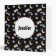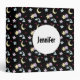 Whimsical Moon, Stars and Clouds Pattern on Black 3 Ring Binder