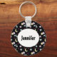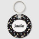 Whimsical Moon, Stars and Clouds Pattern on Black Keychain