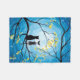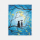 Two cats sitting on a branch watching the full moon with a blue sky filled with stars. The branches of the trees surrounding them with small yellow flowers. Black tuxedo cat and a bi-color white and grey spotted cat. Original Modern Whimsical Acrylic Painting by Donna Leger. All Rights Reserved. ©irony designs