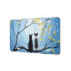 Two cats sitting on a branch watching the full moon with a blue sky filled with stars. The branches of the trees surrounding them with small yellow flowers. Black tuxedo cat and a bi-color white and grey spotted cat. Original Modern Whimsical Acrylic Painting by Donna Leger. All Rights Reserved. ©irony designs