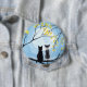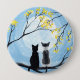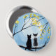 Two cats sitting on a branch watching the full moon with a blue sky filled with stars. The branches of the trees surrounding them with small yellow flowers. Black tuxedo cat and a bi-color white and gray spotted cat. Original Modern Whimsical Acrylic Painting by Donna Leger. All Rights Reserved. ©irony designs