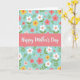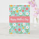 Designed with a soft coral-pink banner stretching across the center, this card places the words “Happy Mother’s Day” in flowing white lettering that feels gentle and affectionate ❤️. Thin dashed lines run near the top and bottom edges of the banner, giving the message a lightly framed look without feeling heavy. Behind it, a calm turquoise background sets a spring-sky mood, like a quiet day meant for close company. Scattered across the backdrop are stylized flowers in white, pale pink, deeper pink, and sunny yellow, arranged in a repeating pattern that feels like a bouquet shared between loved ones 🌼. Each bloom has a small orange center, adding a warm spark that pairs nicely with the cooler turquoise. Small green leaves and stems weave between the blossoms, creating a garden-like setting that suggests care and closeness. The main text sits centered on the banner, while the floral pattern continues evenly around it. The flowers vary in size and angle, with rounded petals and tiny orange dots at their centers against the turquoise field.