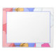 A notepad with a whimsical mountain themed border. Colors/colors include pink, purple, yellow, apricot.