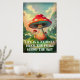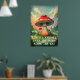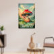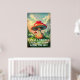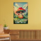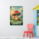 The mushroom is vibrant and oversized, with a vintage style and a playful, almost cartoonish appearance.
