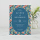 This wedding invitation features a modern botanical theme with an oval navy blue frame surrounded by tall teal cacti adorned with vibrant pink flowers. The design uses clean lines and smooth gradients, creating a fresh and inviting aesthetic that blends natural elements with contemporary style. Elegant script and serif fonts highlight the customizable text areas, ensuring readability while adding sophistication. Perfect for couples seeking a whimsical yet refined touch, this invitation sets the tone for a celebration of love and nature.