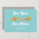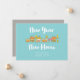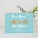 Moved home in the new year? Share your new address with this fun whimsical announcement card. This design features the phrase "new year new home" in white brush lettered font, a row of colorful hand drawn houses, all against a light blue background. Your address details are at the bottom in white. The backer for this design is in solid grey.