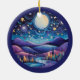 Whimsical Night Big Moon Landscape Ceramic Ornament