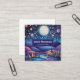Business cards with a beautiful illustration. Whimsical and fanciful vibe. A big glowing moon with stars all around. Hanging over a lovely landscape of trees, mountains and a winding river. Awesome magical mystical vibe.