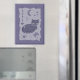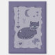 This hand-painted folk art piece features a serene cat resting under a celestial canopy of a crescent moon and stars. Its dreamy purple palette and delicate botanical motifs create a cute and whimsical, heartwarming atmosphere.