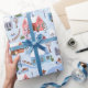 Picture a serene Christmas village bathed in soft pastel colors, predominantly light blue, inspired by the cozy allure of hygge. Each house and tree exudes whimsy, creating a heartwarming scene that captures the essence of a Nordic winter wonderland. This wrapping paper isn't just a festive covering; it's an invitation to share the joy of the season in the most enchanting way.