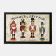 Personalized Nutcracker Doormat – Seasons Greetings Welcome guests in festive style with this personalized Nutcracker doormat. Four charming Nutcracker soldiers stand proudly in the center of this design, set against a deep beige background with holly leaves and berries. The top of the mat features the words "Season's Greetings," while the bottom offers a space for personalization, making it a unique addition to your holiday decor. Perfect for entryways, this doormat adds a touch of traditional Christmas magic and warmth to your home.