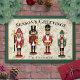 Personalized Nutcracker Doormat – Seasons Greetings Welcome guests in festive style with this personalized Nutcracker doormat. Four charming Nutcracker soldiers stand proudly in the center of this design, set against a deep beige background with holly leaves and berries. The top of the mat features the words "Season's Greetings," while the bottom offers a space for personalization, making it a unique addition to your holiday decor. Perfect for entryways, this doormat adds a touch of traditional Christmas magic and warmth to your home.