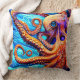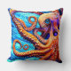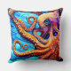 Whimsical Octopus Blue Ocean Wave Cubism Throw Pillow