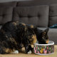 Treat your furry friend to a stylish meal with this unique pet bowl featuring a fun and colorful "Cool Cats" pattern. The whimsical design showcases a variety of cats in olive green, pink, and other vibrant tones, centered around a main cat that adds a touch of charm. Made for both style and function, this bowl is perfect for holding your pet's food or water while adding an artistic touch to your home decor. See the coordinating cat mat at the Pet accessories collection