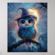 Whimsical Owl in Witch Hat with Full Moon Poster